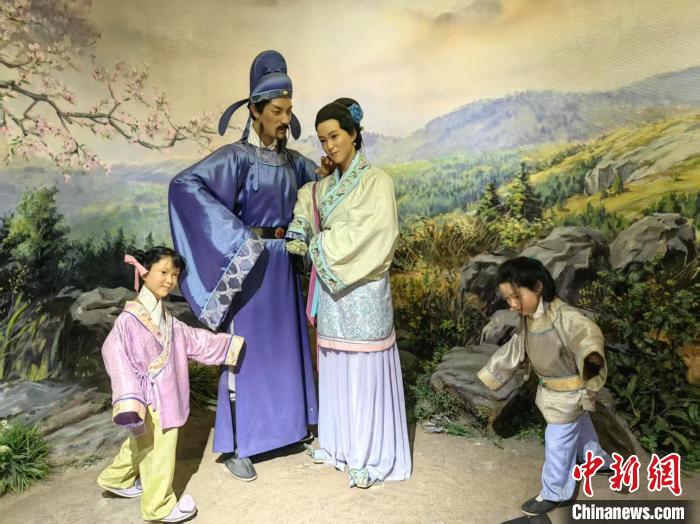 安陸李白紀念館內(nèi)的李白與許氏夫人蠟像。 記者 艾啟平 攝