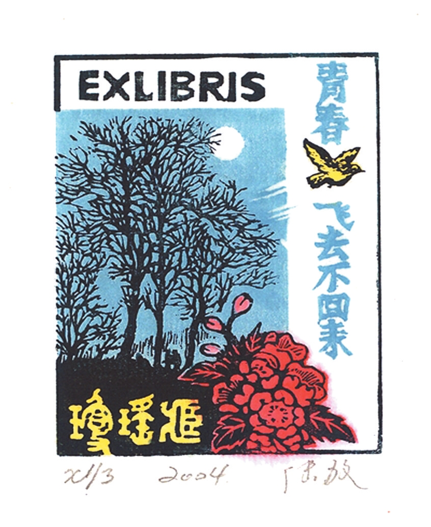 創(chuàng)作一枚專屬于自己的水印木刻藏書票,是一場頗富詩意與匠心的藝術(shù)之旅。從構(gòu)思到設(shè)計(jì),從刻板到印刷,充滿著創(chuàng)作者對(duì)文化的敬畏、對(duì)書籍的熱愛以及對(duì)美好的期許。水印木刻藏書票的制作并不簡單,會(huì)經(jīng)歷各種各樣的意外——紙張的濕度、顏色的厚薄、錯(cuò)版等都會(huì)影響畫面效果。但這何嘗不是一次深度的文化體驗(yàn)?在設(shè)計(jì)中認(rèn)知自我,與書籍神交;在勞作中體悟精益求精的工匠精神;在印制中領(lǐng)略千變?nèi)f化的色彩韻味。當(dāng)用刻刀在木板上刻下自己的名字,馬蓮在紙的背面輕輕摩擦,墨色慢慢洇化,心靈在方寸之間得到浸潤。如果把創(chuàng)作過程寫成一本書,水印木刻帶來的奇妙感受將是書中最精彩的情節(jié)。