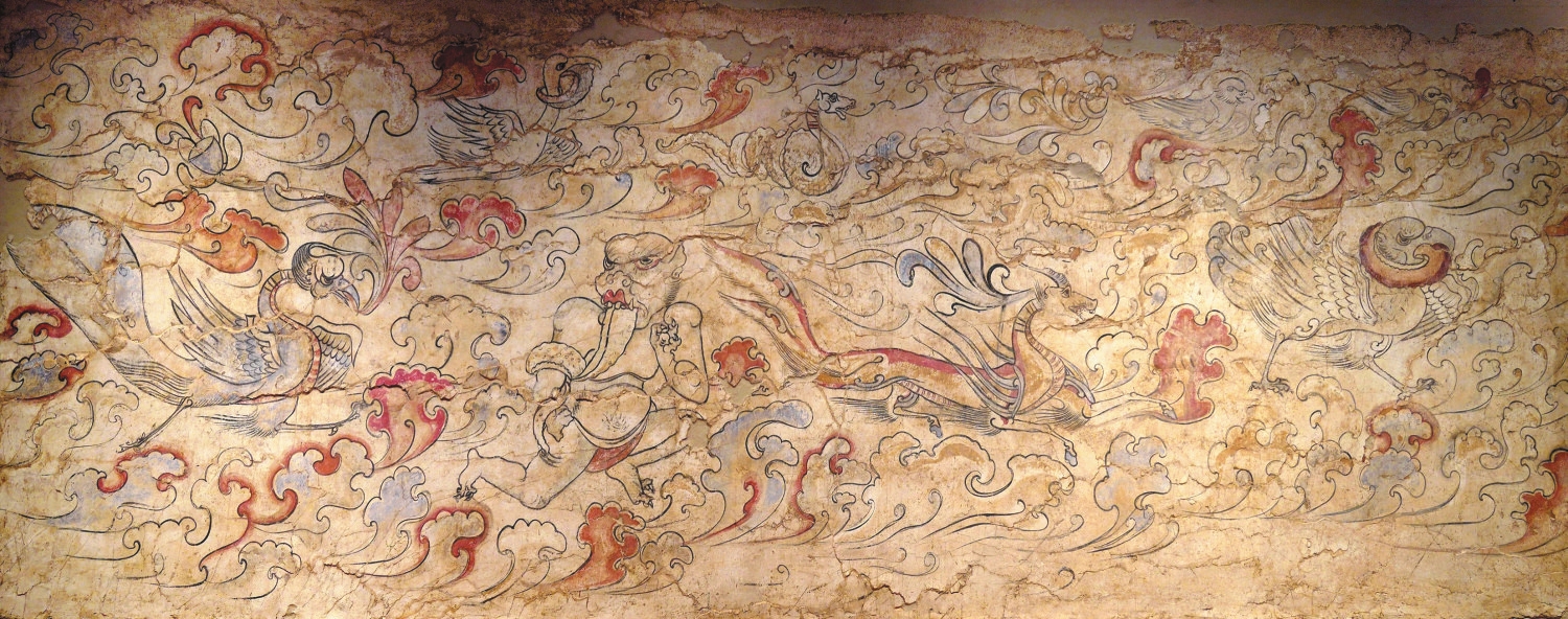 忻州北朝墓葬壁畫中《升天圖》局部 北朝墓群是忻州市文物保護單位,現(xiàn)存地表的高大封土堆有5個,封土堆底徑40——50米,高度5——8米。此次發(fā)掘的壁畫墓位于忻府區(qū)蘭村鄉(xiāng)下社村東北約600米處。 尋找封土的秘密 2013年春,山西大學歷史文化學院一名考古專業(yè)的學生在忻州開展調(diào)查研究,發(fā)現(xiàn)一處平整寬闊的土地上有一個高大土堆,懷疑這是一座北朝大墓的封土堆,隨后便向考古部門報告了此事。不久,當時的山西省考古研究所派人趕赴忻州,與忻州市文物管理部門工作人員合力進行調(diào)查。經(jīng)過詳細考察,確定此處是一座規(guī)格較高的大墓,墓室內(nèi)墻上還有壁畫。 為加強對忻州北朝墓葬壁畫的保護,山西省考古研究院、山西博物院聯(lián)合忻州文物部門對墓葬進行搶救性發(fā)掘,共清理壁畫約200平方米,不僅首次發(fā)現(xiàn)同時期墓葬中的木結(jié)構(gòu)建筑壁畫,還發(fā)現(xiàn)了目前國內(nèi)發(fā)現(xiàn)面積最大的北朝墓葬狩獵圖。 揭開古墓的面紗 制定了完善的發(fā)掘和保護計劃后,考古隊正式開始發(fā)掘。工作人員在探方內(nèi)發(fā)現(xiàn)了白灰線,經(jīng)過仔細清理平面,墓道邊線清晰呈現(xiàn),墓道長約31米,寬約3.5米。接著就是墓道的發(fā)掘工作,在對墓道小面積的解剖過程中,發(fā)現(xiàn)墓道的建法很特殊——是一條很寬的墓道,兩側(cè)各砌起一道土坯墻,墻上涂抹著一層摻有麥秸的黃泥,黃泥表面加抹了一層白灰,形成地仗層。工作人員在小面積的解剖過程中,非常注意對壁畫的保護,因此在靠近墓壁的地方仍保留了10——15厘米的填土,準備發(fā)掘到一定程度后再清理。 甬道位于墓道與墓室之間,平面呈長方形,長3米,寬1.95米,高3.2米,拱形券頂。甬道南端原有石門,現(xiàn)僅殘存石質(zhì)門楣和門額。門額上方砌一堵門墻,口寬2.5——3.37米,高6.47米,用以繪制壁畫。墓門上方還有一道墓門墻,極為罕見。沿甬道往北是墓室,墓室砌筑于方形土壙內(nèi),平面為方形,東西長5.9米,南北寬5.75米,高約8.4米,穹窿頂,四壁厚0.45米。四面墻壁原均有壁畫,現(xiàn)僅余頂部星象圖保存較好。 經(jīng)過考古隊反復討論,最后決定在墓道上方搭建鋼結(jié)構(gòu)彩鋼大棚,并安裝監(jiān)控、警燈,派專人負責工地保衛(wèi)。目的一是為了保護墓葬,減少人員進出;二是保護壁畫,減少陽光、空氣、水對壁畫的破壞;三是可以減少雨季對墓葬的影響,同時便于發(fā)掘保護。2013年10月,墓道發(fā)掘工作大面積展開,經(jīng)過半個多月,發(fā)現(xiàn)墓道西壁出現(xiàn)面積較大的輕微霉斑,采取物理清理后基本穩(wěn)定。 隨著發(fā)掘深入,氣候慢慢轉(zhuǎn)冷,為了保護壁畫,考古隊給墓群修筑了取暖設施。在大棚外壘砌地爐,讓暖氣經(jīng)過工作棚內(nèi)東西兩側(cè),使墓道內(nèi)溫度基本保持在10℃左右。這樣做的好處首先是墓道壁畫不會經(jīng)歷因溫度大幅變化導致的壁面干裂脫落,其次壁畫顏色還可以保持鮮艷的本色,不至于脫色掉皮,同時也給清理工作帶來便利。 重現(xiàn)壁畫的精彩 為將珍貴的文化遺產(chǎn)保護好,有關(guān)部門邀請了國內(nèi)壁畫保護領域的專家舉行座談會。經(jīng)過現(xiàn)狀調(diào)查、科學分析及試驗性修復,嚴格遵循國家文物保護法規(guī),設計了一個壁畫揭取保護方案。由于草木根系布滿整個畫面,造成白灰層地仗與麥秸泥地仗的疏松甚至分離,所以在壁畫保護過程中,需要最大限度剪除草木根系,恢復白灰層的穩(wěn)定。白灰層地仗表面附著的污塵,一經(jīng)鈣化就會給清理工作帶來較大困難,經(jīng)過反復實驗,工作人員決定用竹簽從各個方向反復剔除的方法對其進行清理。針對白灰層地仗錯位疊壓引起白灰層與麥秸泥地仗分離的情況,工作人員采取直接在疊壓邊緣加固的方法。 此次發(fā)掘以壁畫保護為主。上層壁畫粉碎情況嚴重,保護組對壁畫碎塊一一加固,對壁畫顏料進行封護,并對壁畫表面病害做了記錄與分析,同時使用干濕度測試儀對壁面的不同顏料、不同區(qū)域進行跟蹤監(jiān)測。發(fā)掘進度雖然緩慢,但是發(fā)掘出的壁畫均得到了有效保護。通過與浙江大學文化遺產(chǎn)研究院、山西晉之源文化藝術(shù)公司兩家機構(gòu)合作,每發(fā)掘一層壁畫,便使用儀器及時掃描,將壁畫內(nèi)容、顏色等信息盡可能完整保存下來。彩色打印出圖后,經(jīng)過比較,專家組對掃描效果非常滿意,認為比傳統(tǒng)的壁畫臨摹效果好、時間短、花費低、易保存。 探究古人的世界 山西發(fā)現(xiàn)的大型北朝壁畫墓很多,被人們熟知且規(guī)格較高的有婁睿墓、徐顯秀墓等。從壁畫內(nèi)容及規(guī)模來看,忻州北朝墓壁畫都比同時期墓群的內(nèi)容更加豐富。駐足墓道南端,目光向北直達墓室,看到面積約240平方米的精美壁畫,大家的喜悅之情溢于言表。 忻州北朝墓墓道東西兩壁的壁畫非常令人震撼,是同時期墓葬壁畫中保存較完整、精細的一處,對研究北朝社會生活、繪畫藝術(shù)、古代建筑史都有非常重要的意義。壁畫第一層為升天景象,繪有神怪異獸、龍鶴仙人、風伯雨師等形象;第二層以郁郁蔥蔥的山林為背景,描繪了備馬出行和狩獵場景;第三、四層依舊以山林為背景,繪有隊列出行圖。此外,墓道北壁還繪有一座規(guī)模宏大的廡