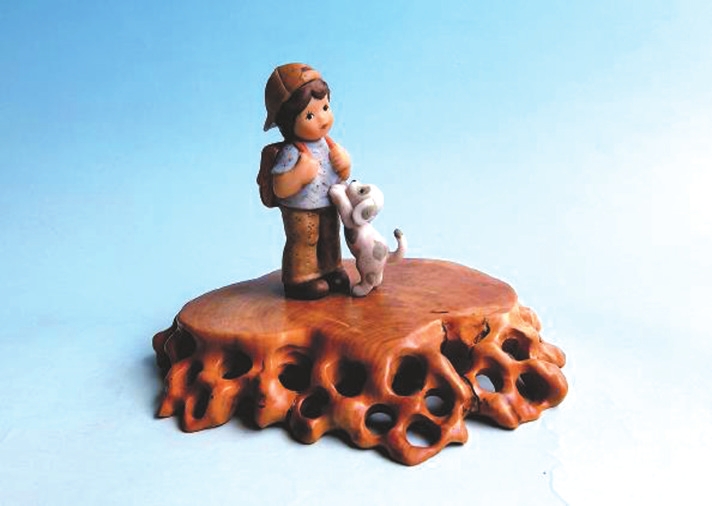 我的藏品中有一件來(lái)自德國(guó)的喜姆瓷偶·上學(xué),它是赴德工作的同事帶回的禮物。這件瓷偶高8.5厘米、長(zhǎng)5.5厘米、寬2.8厘米,生動(dòng)刻畫了一個(gè)背著雙肩包即將去學(xué)校的小男孩和一只不舍小主人離開的花狗,溫馨逗趣的畫面讓人忍俊不禁。