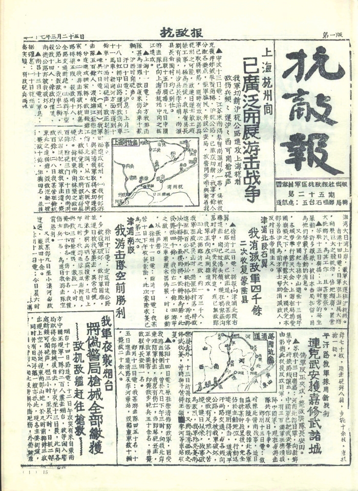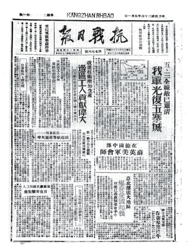 抗戰(zhàn)時期,忻州既是晉察冀、晉綏兩大根據(jù)地的中心腹地,也是抗戰(zhàn)初期全面抗敵的主戰(zhàn)場。忻州以其地理咽喉、戰(zhàn)役要沖、根據(jù)地核心和人民戰(zhàn)爭典范的多重角色,成為抗日戰(zhàn)爭中抵御日軍侵略、堅持?jǐn)澈蠖窢幍膽?zhàn)略支點之一。其歷史貢獻(xiàn)不僅體現(xiàn)在軍事上,更彰顯了中華民族不屈不撓的抗戰(zhàn)精神。隨著八路軍平型關(guān)大捷、雁門關(guān)伏擊戰(zhàn)、夜襲陽明堡飛機場等戰(zhàn)役勝利,1937年11月7日晉察冀軍區(qū)在五臺成立。12月11日,《抗敵報》誕生。1940年11月,《抗敵報》改名為《晉察冀日報》,鄧拓任報社主任?!犊箶硤蟆纷畛踉谖迮_石嘴村石印,后改鉛印。1938年1月,晉察冀邊區(qū)行政委員會在河北阜平成立,兩月后,邊區(qū)行政委員會遷駐五臺射虎川臺麓寺,報社、印刷廠分駐海慧庵、蛤蟆石古佛寺。1940年9月18日,晉綏分局機關(guān)報《抗戰(zhàn)日報》,伴隨著隆隆炮火聲,在距離忻州不遠(yuǎn)的興縣艱難創(chuàng)刊。自此,那些戰(zhàn)地記者、通訊員甚或普通民眾,有名的,無名的,以個人名義,以集體名義,在極其艱苦的條件下,用滾燙筆尖秉筆直書,為我們珍存了那些發(fā)生在忻州大地上前仆后繼、可歌可泣的抗戰(zhàn)故事,也讓今天的人們一旦捧讀就會熱血沸騰。
