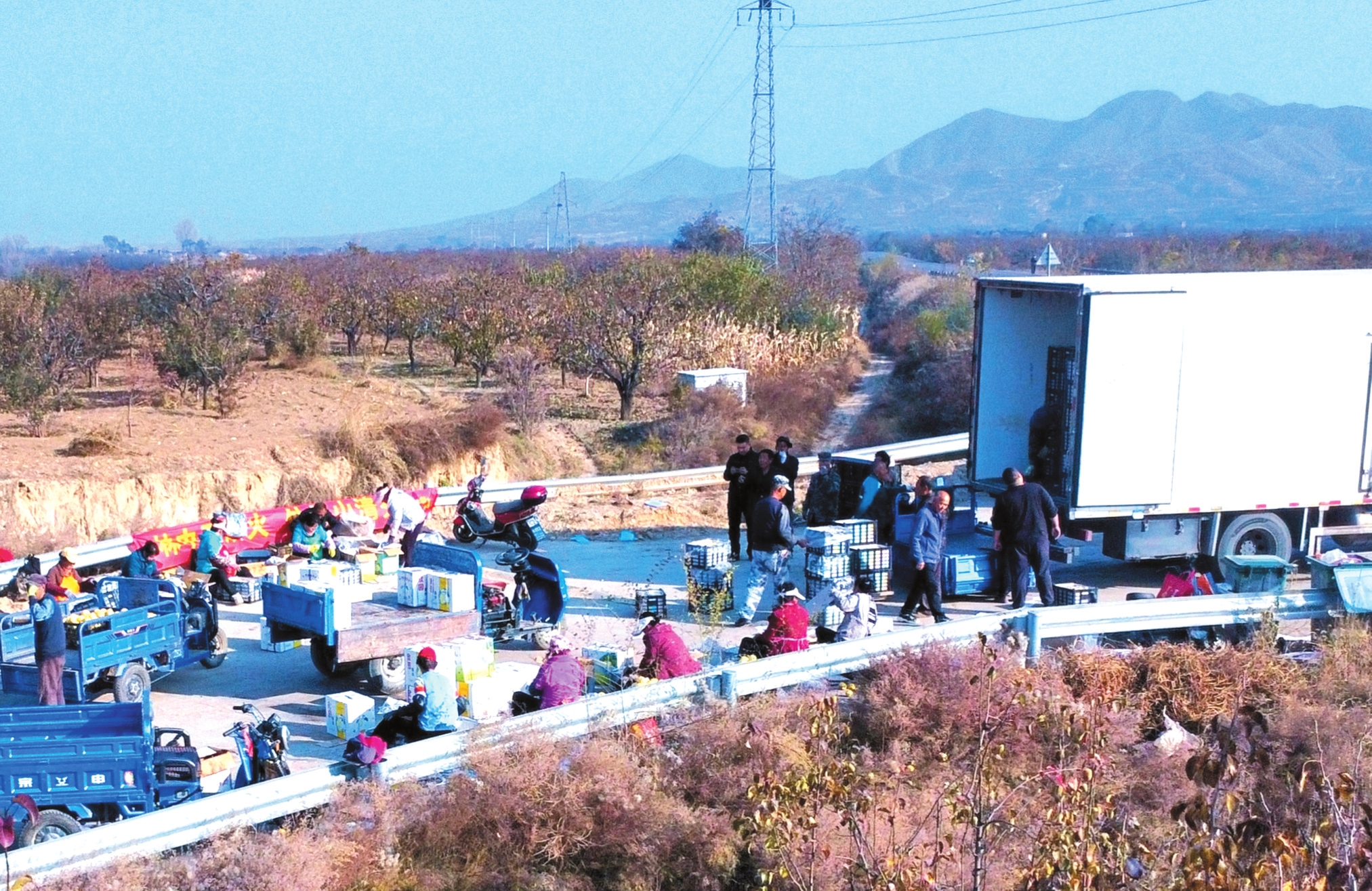 11月13日,原平市同川鎮(zhèn)上莊村果農正將優(yōu)質酥梨裝車發(fā)往河北等地。近年來,該市走品牌農業(yè)和綠色種植路子,以農業(yè)高質量發(fā)展帶動農民增收。(褚震攝)