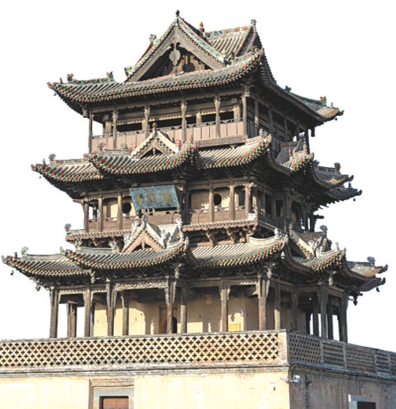 山西運(yùn)城萬榮縣秋風(fēng)樓的每一層都裝飾著懸魚