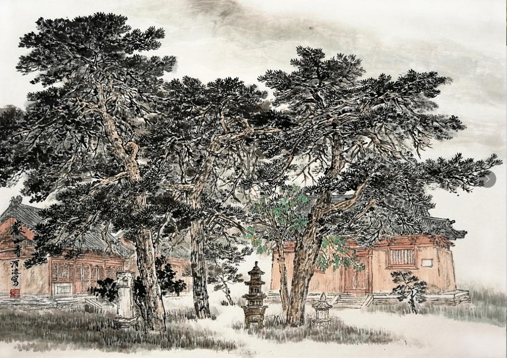 后來因?yàn)樗L畫上取得的成績,調(diào)到了忻府區(qū)文聯(lián)工作。條件好了,畫的畫更多了,畫風(fēng)依然樸實(shí)親切,給人一種視覺的舒適感。這幾年他是在一路前進(jìn)的,他筆下的線條清朗有力,墨色變化也更加豐富,畫中有了渾厚華滋的氣象。細(xì)看他的畫,樸實(shí)中蘊(yùn)藏著精巧,拙拙的行筆中偶露鋒厲,給畫面帶來活力生機(jī)。我們?cè)谝黄饘懮?,他在畫面?jīng)營上、構(gòu)圖處理上總能給人意想不到的驚喜。畫面虛實(shí)處理把握的恰到好處,又能準(zhǔn)確表現(xiàn)自然原貌的神采。于不知不覺中將自己的審美和情感融入了畫中,完成的寫生總比自然景色更加生動(dòng)、更吸引人的目光,但又讓你看不出他是在哪里做了手腳。
