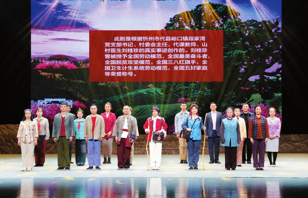 得知自己飾演女主角柳玉珍,演員蘇瑞芳背后做了很多功課,親自到段家灣與原型劉桂珍“零距離”接觸。聽完桂珍大姐的故事,蘇瑞芳內(nèi)心無比震撼,為了更好地塑造角色,一有空閑就拉著搭檔“開小灶”,反復(fù)打磨動(dòng)作?!拔枧_(tái)上的每個(gè)人物都有生活原型,每段劇情都是根據(jù)真實(shí)事件改編而來?!碧K瑞芳動(dòng)容地說,“現(xiàn)實(shí)中桂珍大姐遇到的情況可能比舞臺(tái)上表現(xiàn)得更困難,但她卻始終不忘初心,扎根農(nóng)村,身兼‘四職’,承擔(dān)起脫貧攻堅(jiān)領(lǐng)頭雁、治病救人好醫(yī)生、教書育人好老師、扎根基層好黨員等多重角色,以引領(lǐng)村民脫貧致富為己任,忠實(shí)踐行一名共產(chǎn)黨員的神圣使命。她身上的優(yōu)秀品質(zhì)值得我們每一個(gè)人學(xué)習(xí),我為自己能夠有機(jī)會(huì)飾演她感到驕傲自豪!”