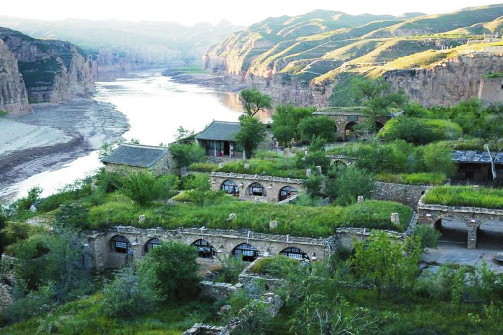 一眼望不到頭的長城從遠處山梁上綿延而來直達河邊。看不見激流奔涌,聽不見黃河濤聲,清清的河水在這里悠悠徜徉盤桓。如果說長城如父親般剛強有力,沉雄穩(wěn)健,黃河如母親般溫柔親切,寬懷博大,那寺溝恰如父母懷中幸福溫婉的小孩。寺溝慵懶地在河邊梳洗自己的容顏,連同身邊的長城倒影在粼粼的河水中,展現(xiàn)出難得的田園詩般的浪漫與柔情。山上長城夯土保持完整,有青銅群雕,旌旗獵獵,似將軍正在縱馬出巡。登墩臺四望,視野開闊,長城下人家炊煙裊裊,雞犬相聞。峽谷中游船往來,馬達轟鳴聲中幾只野鴨貼著河面飛向不遠的村子,飛向?qū)Π渡窖?。寺溝,一個把塞北風光與江南水鄉(xiāng)有機融為一體的地方。