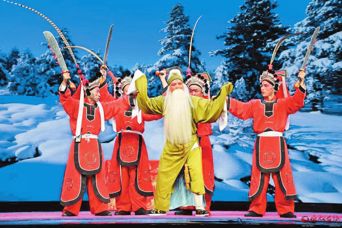 1943年,大眾劇社遷往康家灘,從工衛(wèi)旅劇社調(diào)來(lái)王洽勛等二人,負(fù)責(zé)教唱晉劇,排練了《撿柴》《蘆花》《回荊州》等傳統(tǒng)劇目。同年,晉綏二中師生共同組建了一個(gè)業(yè)余劇團(tuán),演出的節(jié)目反映了根據(jù)地人民革命斗爭(zhēng)的現(xiàn)實(shí)生活,教育意義非常深刻。如現(xiàn)代歌劇《十二把鐮刀》,話劇《棋局未定》《把眼光放遠(yuǎn)點(diǎn)》,北路梆子《十二金牌》等?!妒鹋啤肥歉毙iL(zhǎng)武進(jìn)卿編寫(xiě)的劇本,由校長(zhǎng)范若愚飾演岳飛。