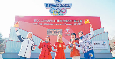 2月4日,河北張家口經開區(qū)的市民共同慶祝2022北京冬奧會開幕倒計時一周年。畢瑞翔攝(人民視覺)