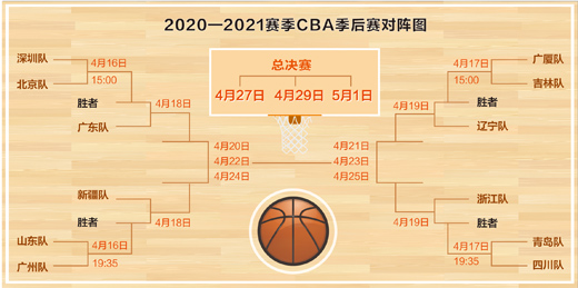 季后賽半決賽和總決賽均采取三戰(zhàn)兩勝的賽制,如果比賽打滿,總決賽將于5月1日結(jié)束。(范佳元)