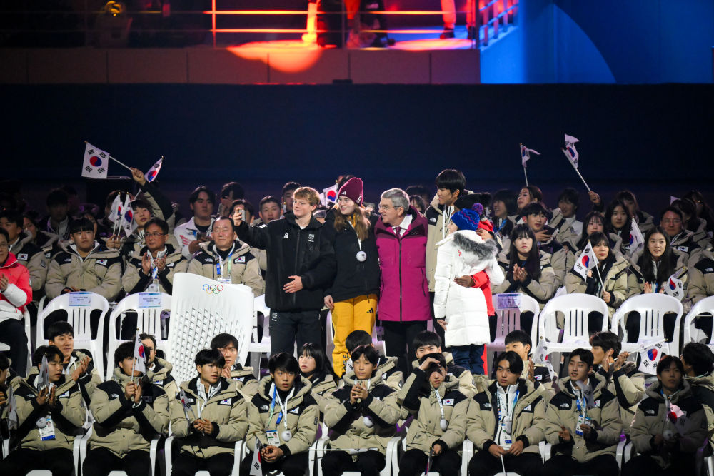 1月19日,國(guó)際奧委會(huì)主席巴赫在江陵速滑館開(kāi)幕式現(xiàn)場(chǎng)與運(yùn)動(dòng)員合影。當(dāng)日,第四屆冬季青年奧林匹克運(yùn)動(dòng)會(huì)開(kāi)幕式在韓國(guó)江原道江陵速滑館和平昌圓頂體育館同時(shí)舉行。新華社記者 朱煒 攝