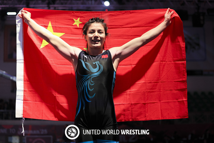 李澤露獲得2025亞錦賽女子自由式摔跤68公斤級(jí)冠軍。圖片來(lái)自世界摔聯(lián)官方網(wǎng)站