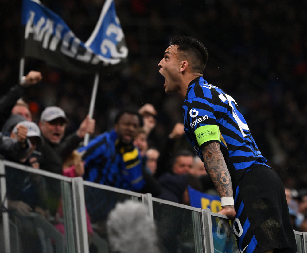 4月16日,國際米蘭隊球員勞塔羅·馬丁內(nèi)斯慶祝進(jìn)球。新華社發(fā)(阿爾貝托·林格利亞攝)
