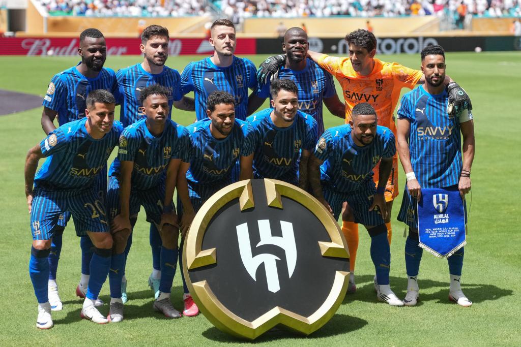 6月18日,利雅得新月隊(duì)首發(fā)球員在賽前合影。新華社記者 黃宗治 攝