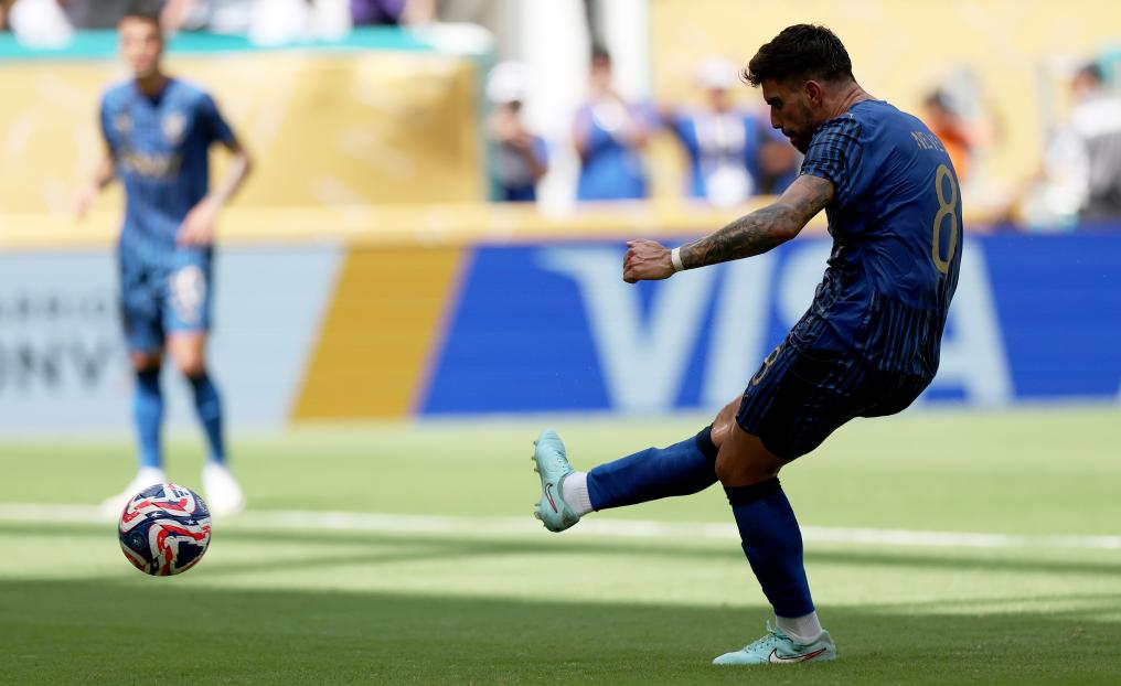 6月18日,利雅得新月隊(duì)球員魯本·內(nèi)維斯在比賽中主罰點(diǎn)球破門(mén)。新華社記者 李明 攝