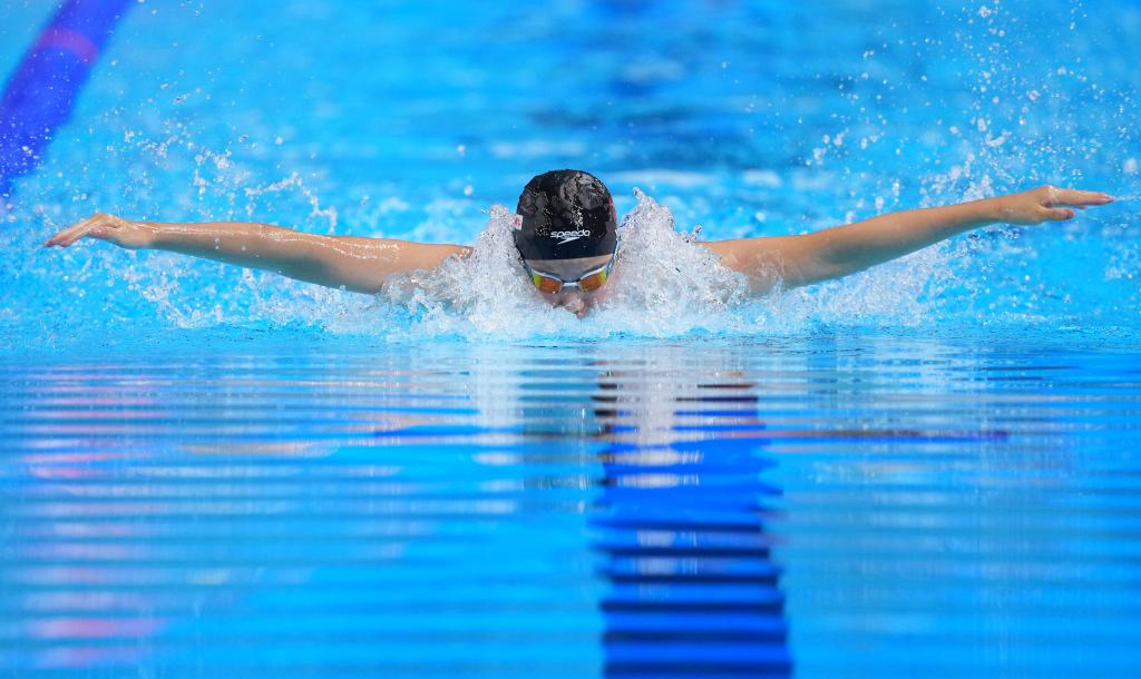 7月31日,中國選手于子迪在女子200米蝶泳決賽中。新華社記者 伍志尊 攝