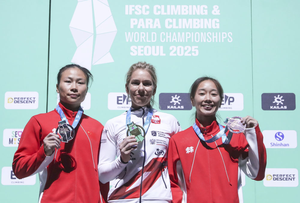 新華社首爾9月24日電(記者張粲、孫一然)在首爾舉行的2025年攀巖世錦賽24日見(jiàn)證世界紀(jì)錄誕生。奧運(yùn)冠軍、波蘭選手米羅斯瓦夫以6秒03的成績(jī)?cè)谂铀俣扰蕩r項(xiàng)目中奪冠,并將她自己在巴黎奧運(yùn)會(huì)上創(chuàng)造的該項(xiàng)目世界紀(jì)錄提高了0.03秒。中國(guó)隊(duì)選手鄧麗娟和周婭菲分獲銀牌和銅牌。