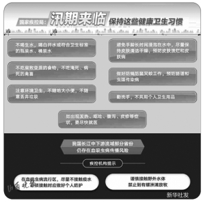 中國疾控中心衛(wèi)生應(yīng)急中心有關(guān)專家介紹,洪澇災(zāi)害易引起飲水水源污染,使災(zāi)區(qū)感染性腹瀉、痢疾等水源性和食源性疾病暴發(fā)風(fēng)險(xiǎn)增加。另外,洪水淹沒糞池、下水道等,導(dǎo)致動(dòng)物尸體腐敗,蚊蠅等媒介生物孳生,血吸蟲、乙腦等蟲媒及自然疫源性傳染病發(fā)生風(fēng)險(xiǎn)會(huì)相應(yīng)增加。