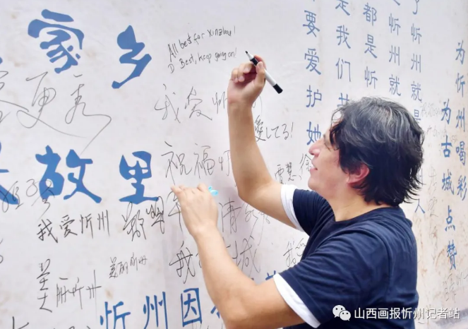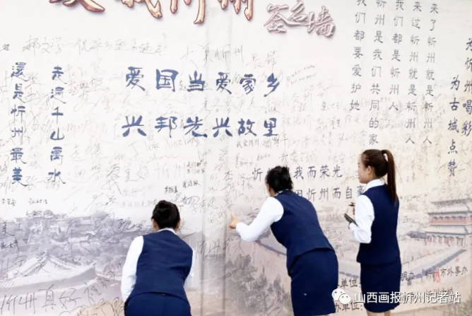 “走遍千山萬水,還是忻州最美”“來了忻州就是忻州人,來過忻州就是忻州人”“愛國當愛家鄉(xiāng) 興邦先興故里”……墻上的一句句充滿情感、生動質(zhì)樸的語言,寫滿了對祖國、對家鄉(xiāng)的濃濃熱愛,引起了過往游客路人的深深共鳴。游人們有的在這些文字旁簽名,有的合影留念,有的文思泉涌寫下一條條深情寄語,盡情表達著對忻州發(fā)展的美好祝福和共建全國文明城市的堅定信心。