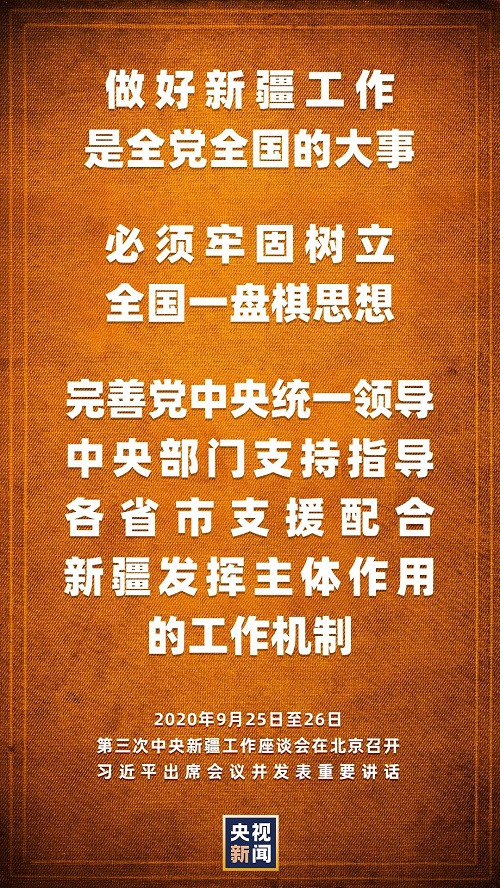 第三次中央新疆工作座談會9月25日至26日在北京召開。中共中央總書記、國家主席、中央軍委主席習近平出席會議并發(fā)表重要講話。