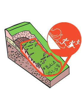 2.坡下行人如遇崩塌應(yīng)向崩塌體下方的兩側(cè)方向迅速逃離。一定不要順著滾石方向撤離,注意保護頭部。