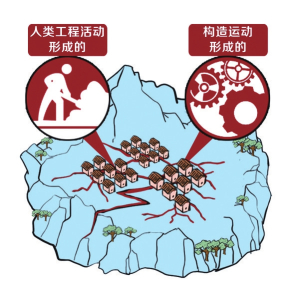 地裂縫的成因有兩大類,第一種是內(nèi)動力,由構(gòu)造運動形成的,比如地震等自然因素;另一種是外動力,由人類工程活動形成的,比如松散土體潛蝕、膨脹土脹縮等形成地裂縫。還有一種是人類過量抽汲承壓水導(dǎo)致的地裂縫。
