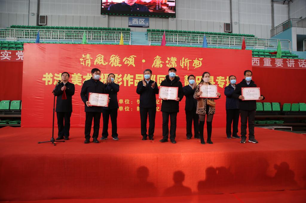 2020年12月2日,“清風雅頌·廉潔忻州”書法美術攝影作品展靜樂站巡展開展儀式在靜樂縣體育中心舉行,縣四大班子領導出席開展儀式,縣委常委、縣紀委書記、監(jiān)委主任方筆計主持。