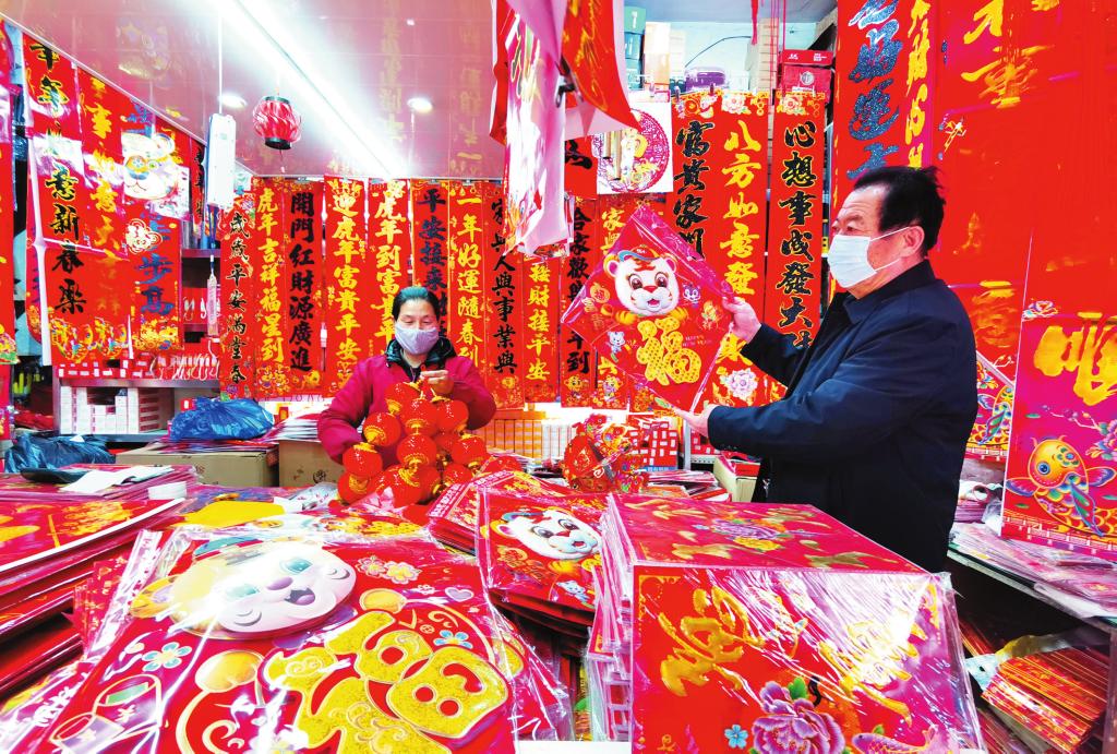 市場內(nèi)各種商品琳瑯滿目,讓人目不暇接。煙酒糖茶、禽、蛋、蔬菜、辦公用品、生活用品,應有盡有。一位商戶說:最近受疫情和網(wǎng)購的影響,生意沒有以前好做了,但市民購買熱情依然高漲,進入臘月以來,生意一天比一天好了起來。據(jù)了解,市場內(nèi)各商戶認真做好疫情防控工作,及時對場地進行消殺,努力營造一個安全祥和的購物環(huán)境。市場上到處充滿著年味,尤其是紅彤彤的春聯(lián)和喜氣洋洋的福字最為搶眼。(王國棟 攝影報道)