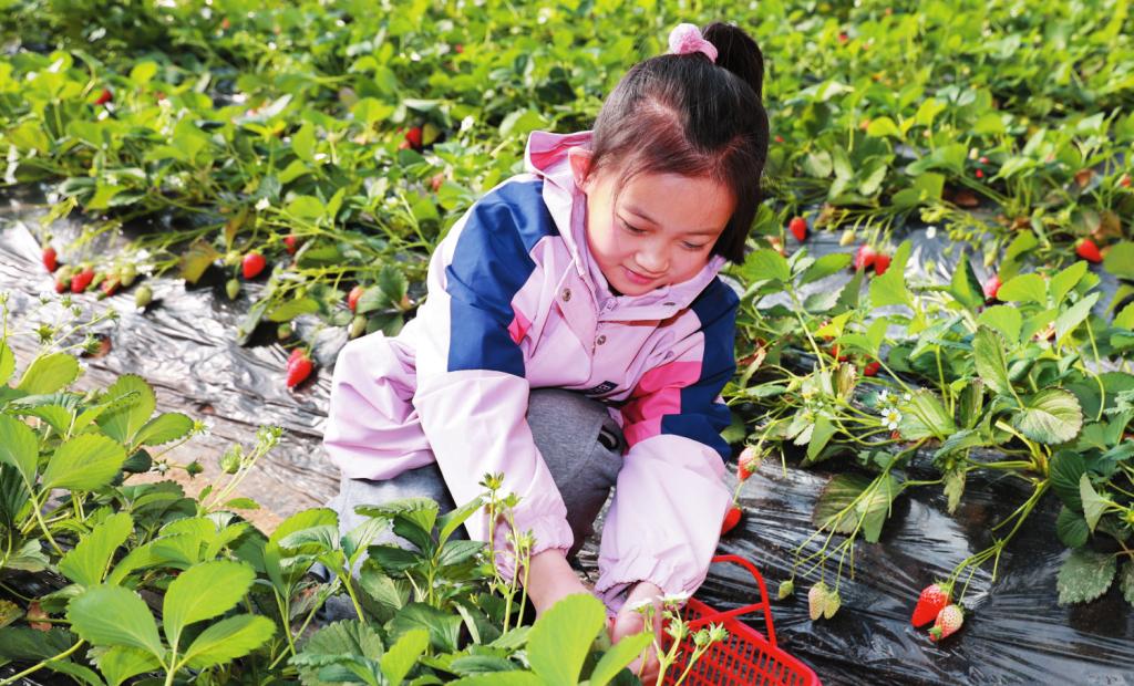 1月18日,小朋友在忻府區(qū)欣欣生態(tài)園果蔬大棚采摘草莓。近年來,忻府區(qū)不斷探索市場需求,調整種植結構,因地制宜發(fā)展大棚種植,既豐富了群眾的“菜籃子”“果盤子”,也拓寬了農民的增收渠道。 (張存良 攝)