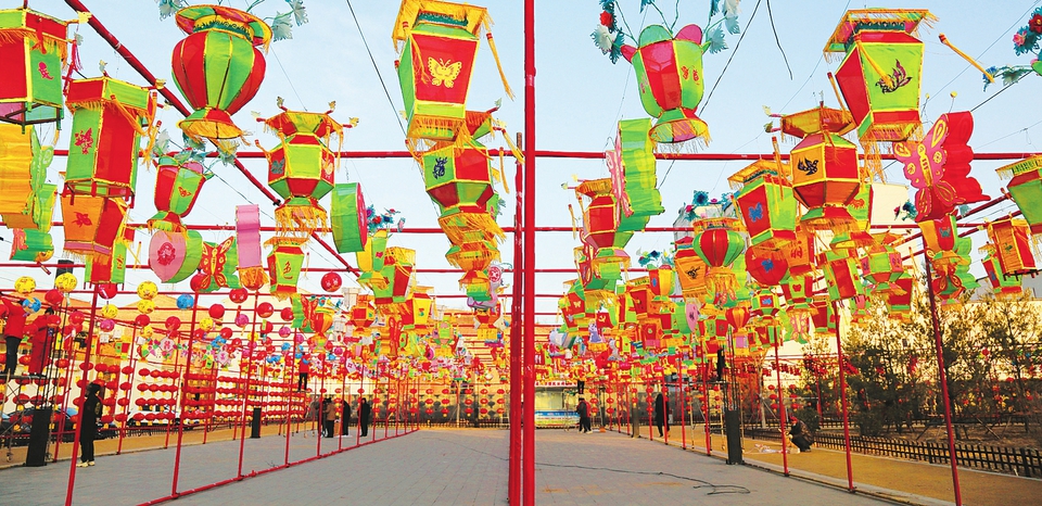 “自北宋建村以來,村里就有做花燈迎新年的傳統(tǒng)。相傳至今,上至80歲老人,下到20歲出頭青年,村里一多半人都有做花燈的手藝?!倍骨f村村民霍書應邊指揮大家掛花燈邊說。