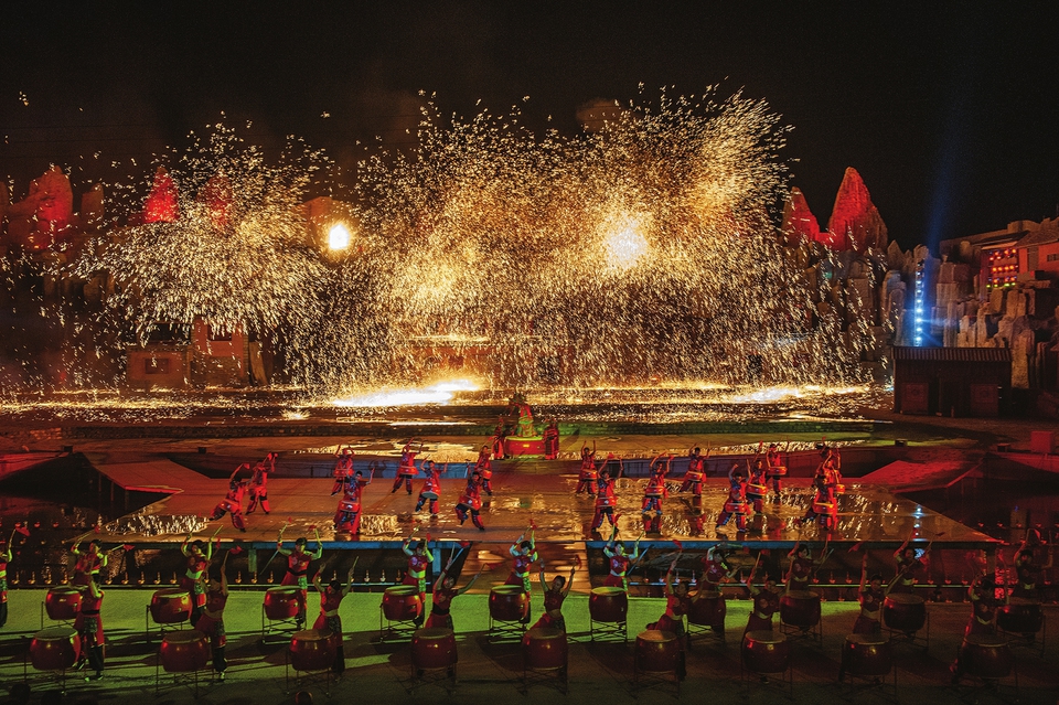 2月18日夜晚,晉城城區(qū)司徒小鎮(zhèn)的《千年鐵魂》演出現場,近千人的劇場座無虛席,融合在璀璨燈光舞美、民俗演繹故事里的“打鐵花”表演恢宏壯闊,令八方來客看得如癡如醉。此時的華誼兄弟星劇場同樣人潮涌動。大型沉浸式融合秀《重逢晉城》,通過大型特效舞臺互動裝置、VR和AR虛擬現實等技術手段,融匯話劇、歌舞、武術、威亞等互動演藝,實景再現晉城6大歷史文化場景,讓每位觀眾“穿越時空、一夢千年”,直呼震撼、過癮。