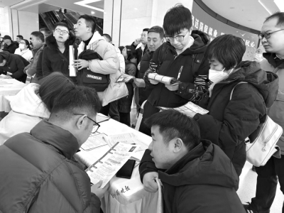 2月5日,正月初八,太原市新春首場(chǎng)大型招聘會(huì)在山西太原人力資源服務(wù)產(chǎn)業(yè)園拉開帷幕。上午9時(shí)許,現(xiàn)場(chǎng)的求職者便已經(jīng)比肩接踵,全力奔赴各自心儀的企業(yè)展位?!皪徫欢啵舐氄咭捕?,感覺比過年時(shí)逛廟會(huì)還熱鬧?!鼻舐氄呲w先生笑著說。