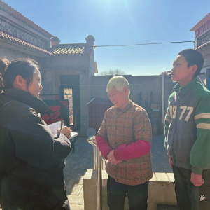 陽(yáng)泉記者站記者霍雪茹在平定縣谷頭村村民吳維桑家中采訪。