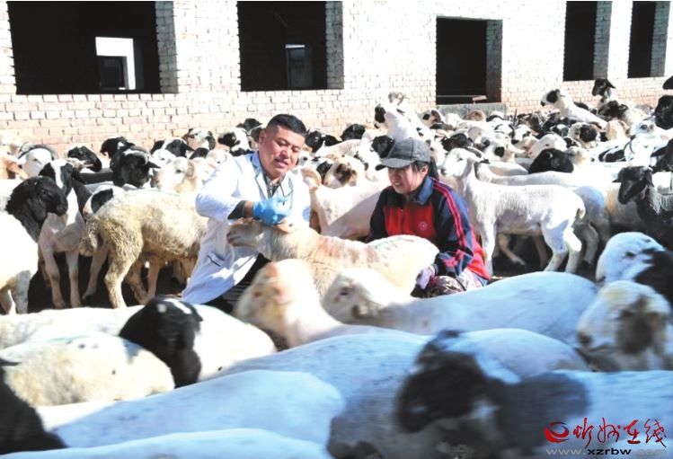 原平市子干鄉(xiāng)的趙全有是在國家政策扶持下成長起來的養(yǎng)羊?qū)I(yè)戶?!坝幸淮蜗卤┯?,我家的羊突然不進食了,試著給王老師打了電話,沒想到他冒著大雨,趕了二十多里山路來了!”趙全有告訴記者。診斷發(fā)現(xiàn)是飼料發(fā)霉引發(fā)的疾病,王興春立即指導更換飼料,直到羊群開始進食才離開?!皼]有王老師,就沒有我的今天。”趙全有說。
