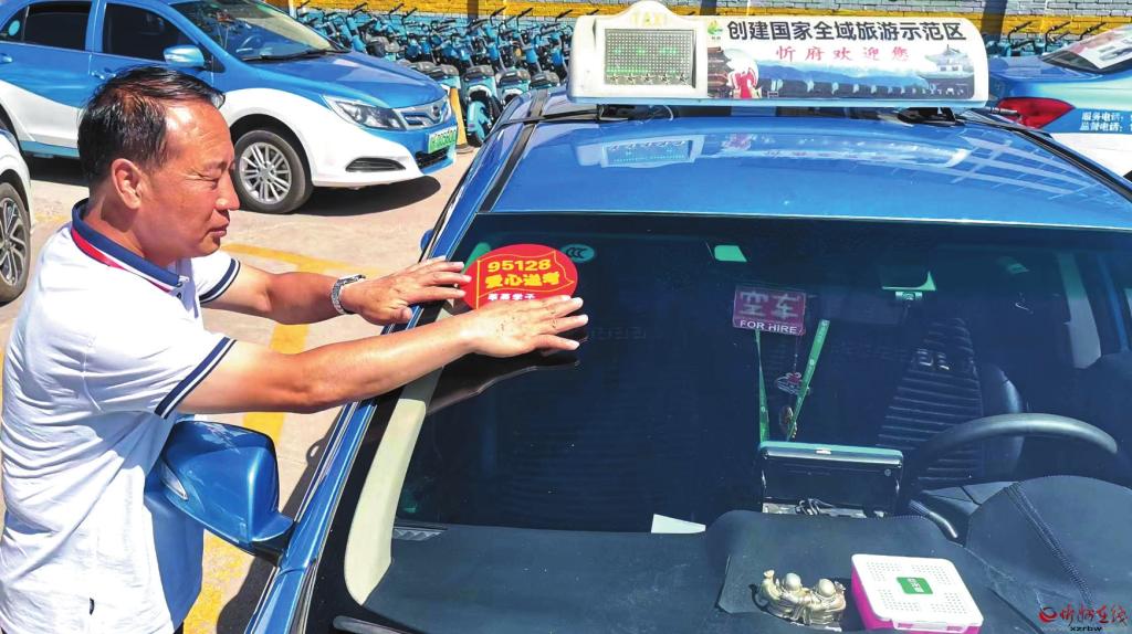 高考前夕,出租車司機(jī)在前擋風(fēng)玻璃上粘貼愛(ài)心送考標(biāo)識(shí)。 張林泉攝