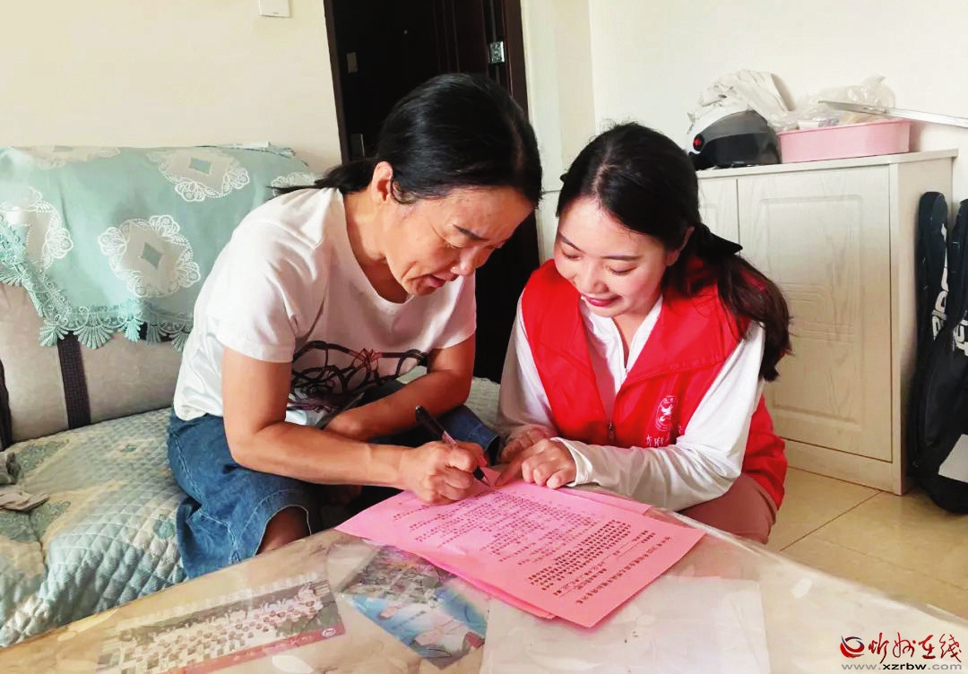 志愿者在居民家中指導(dǎo)居民填寫調(diào)查問卷。劉慧 攝