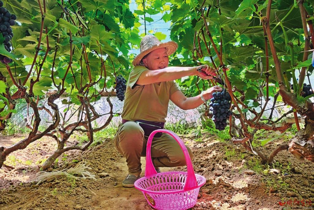 葡萄成熟吸引游客前來采摘