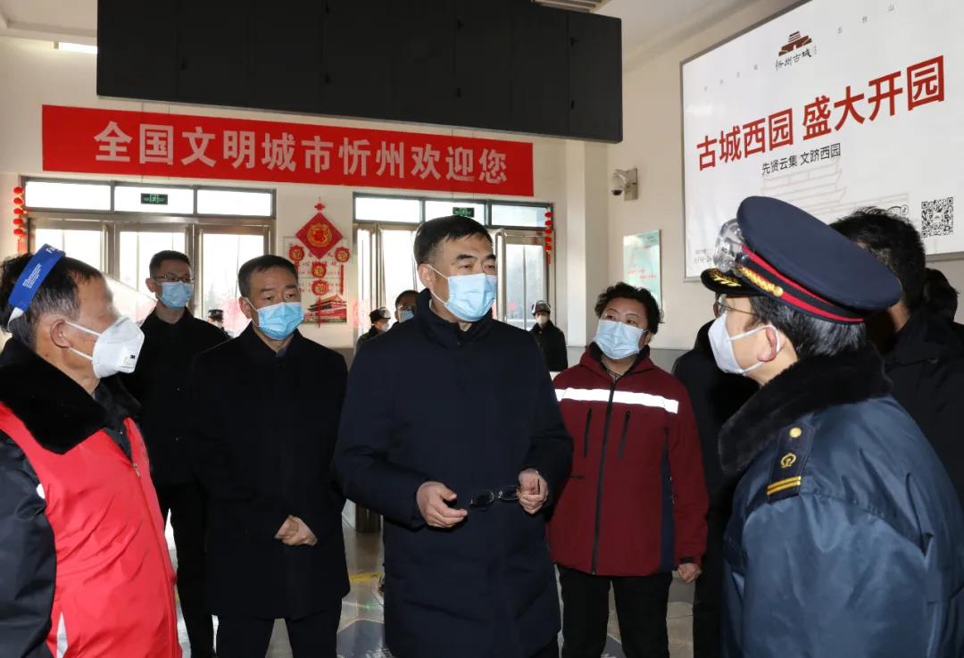 在忻州西站,李建國看望鐵路站場人員、衛(wèi)生防疫人員和社區(qū)志愿者,了解進(jìn)出站高鐵列車班次和人流高峰時(shí)間分布。他指出,防疫一線人員是疫情防控的“第一道防線”,要以崇高的職業(yè)使命感切實(shí)守好第一落點(diǎn)的防疫責(zé)任,不折不扣落實(shí)各項(xiàng)防控措施,嚴(yán)格排查篩查,有力、有序、有效做好站點(diǎn)疫情防控工作。要根據(jù)客流峰谷時(shí)段科學(xué)排班、合理調(diào)度、保證休息,要嚴(yán)格操作規(guī)程,做好個(gè)人防護(hù),為忻州筑牢衛(wèi)生安全屏障。