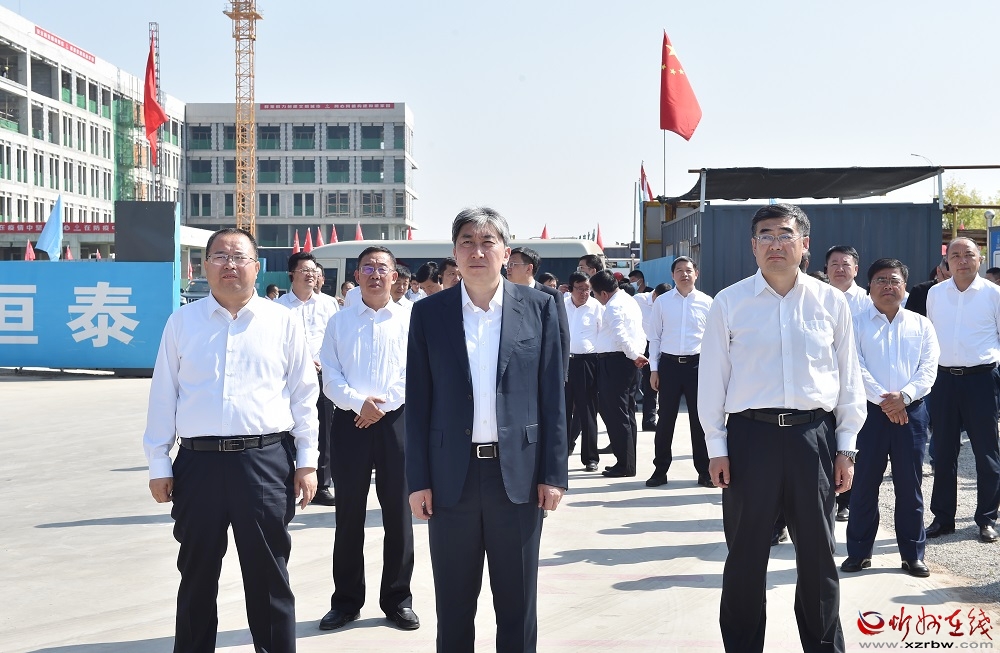 在通匯建設(shè)發(fā)展有限責(zé)任公司觀摩檢查忻州經(jīng)濟(jì)開(kāi)發(fā)區(qū)承接項(xiàng)目標(biāo)準(zhǔn)化廠房項(xiàng)目建設(shè)情況。馮曉磊 攝