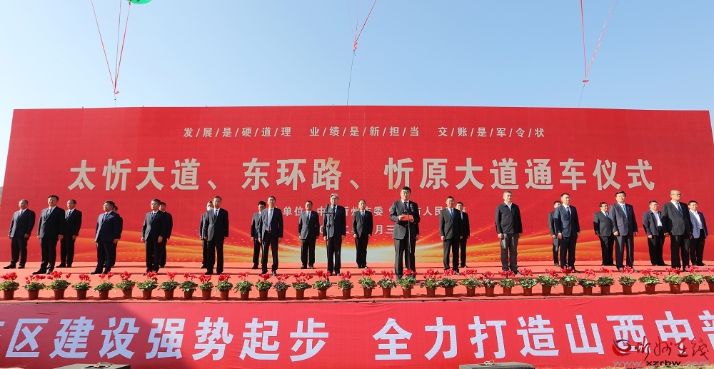 9月30日,我市舉行太忻大道、東環(huán)路、忻原大道通車儀式,市委書記朱曉東出席儀式并宣布太忻大道、東環(huán)路、忻原大道通車。市委副書記、市長李建國主持儀式。市委副書記、政法委書記郭奔勝,市人大常委會主任王珍,市政協(xié)主席范建民,山西建投集團公司副董事長、總經(jīng)理徐忠和,市領(lǐng)導(dǎo)劉卓良、趙新年、張文偉、溫建軍、張敏、張宇光、史紅波、賈玲香、崔崢嶺、李碩、王建峰、張文斌,市政府秘書長張艮生,中鐵十七局集團公司和中建三局集團公司相關(guān)負責(zé)人出席。副市長耿鵬鵬介紹項目建設(shè)情況。