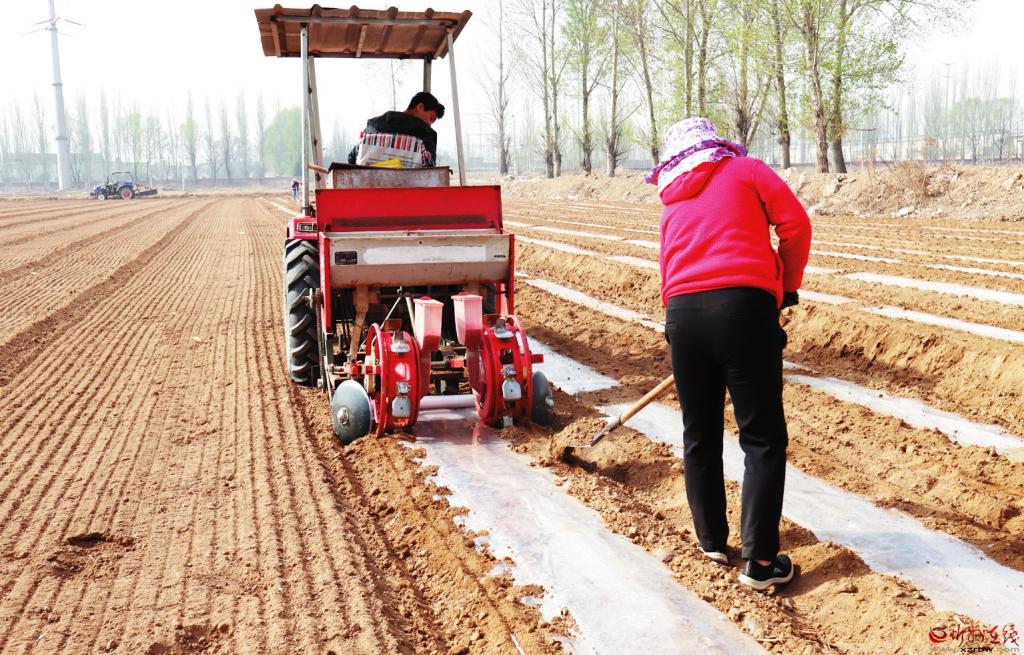 近年來,忻府區(qū)小奇村大力發(fā)展甜糯玉米產(chǎn)業(yè),每年種植面積達到千畝以上,為全村農(nóng)民增收、農(nóng)業(yè)增效發(fā)揮了積極作用。圖為農(nóng)戶在小奇村千畝甜糯玉米種植園區(qū)播種鋪膜。(記者 張林泉攝)