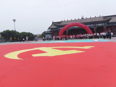 7月2日,我市十幾位沙畫藝術(shù)工作者,在崇福寺廣場用沙畫藝術(shù)的方式向黨的二十大獻禮。一丟、一刮、一勾、一點,旋出他們青春的足跡,畫出對黨和祖國的溫馨祝福。他們用了4個多小時、耗費了300多公斤細沙,繪出了黨旗的巨幅沙畫,“喜迎二十大”六個大字相襯下方,黃色的華表、雄偉壯麗的長城、遨游的飛行員、憨憨的冰墩墩更是活靈活現(xiàn)、躍然眼前。