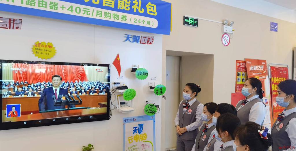 忻州城區(qū)電信七一北路中心營業(yè)廳組織職工收看。宮清華 攝