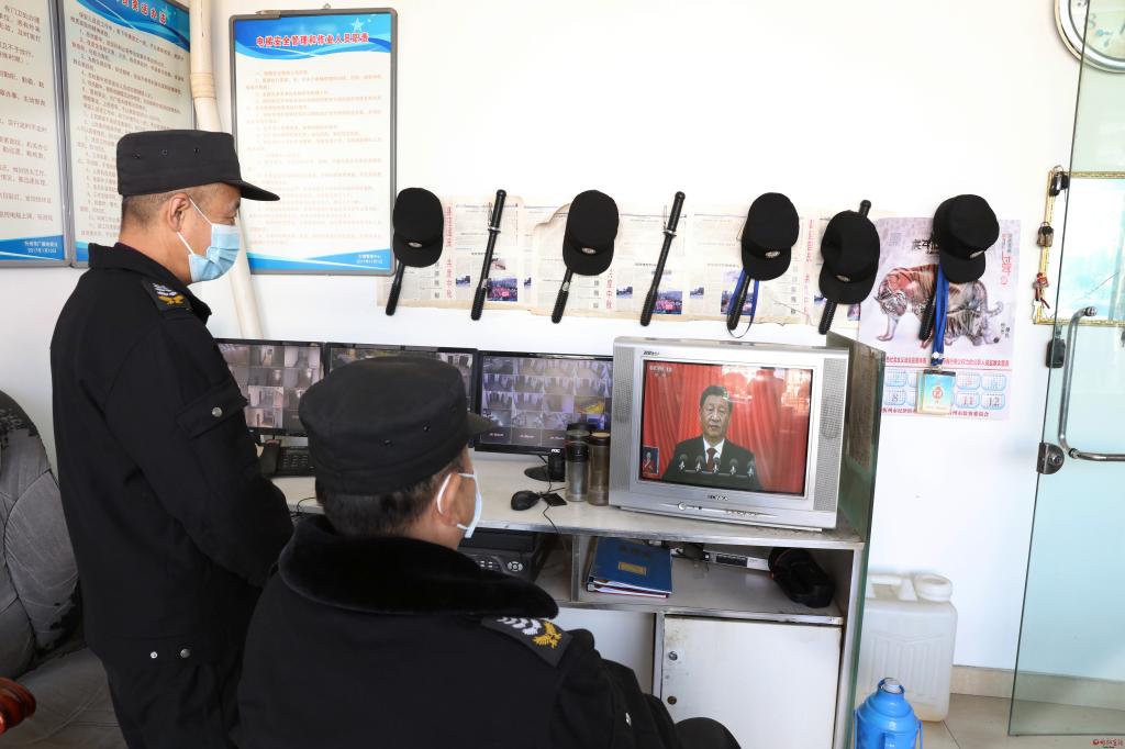 廣電大樓保安觀看大會。范濤 攝