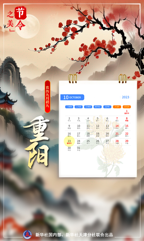 新華社天津10月22日電(記者周潤健)“九日黃花酒,登高會昔聞?!?0月23日,農歷九月初九,重陽節(jié)。歲歲重陽,今又重陽。農歷九月初九緣何是重陽?其中蘊含著怎樣的“數(shù)字密碼”?