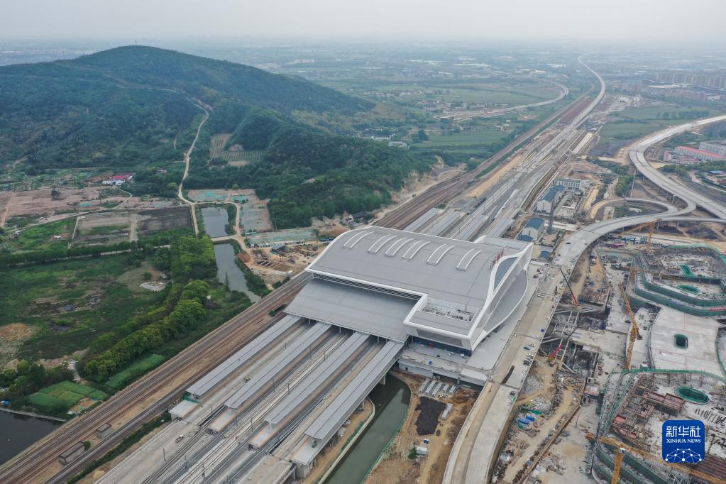 這是滬寧沿江高速鐵路江陰站站房(4月28日攝,無人機(jī)照片)。新華社記者 季春鵬 攝