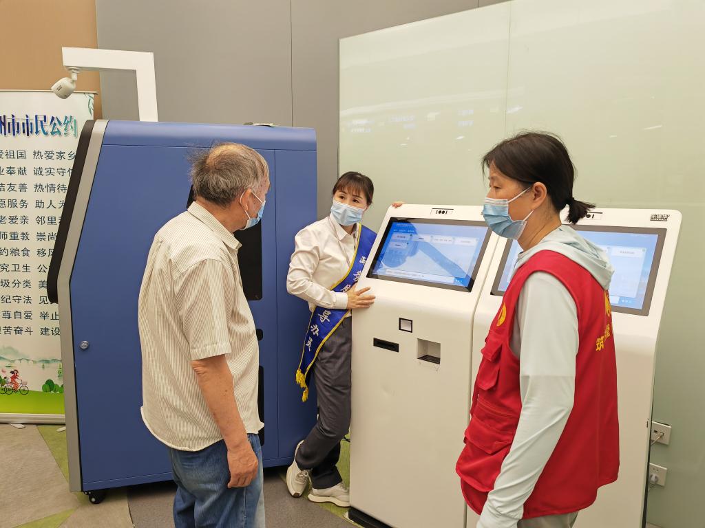 如果申請人線下流程不熟悉、線上辦理不會操作怎么辦?記者看到,在辦事大廳各個辦事點位,站有穿紅馬甲的志愿者和戴藍綬帶的政務服務導辦員,他們有的指導群眾自助使用手機完成相關業(yè)務辦理,有的一對一整理材料、復印資料、填寫表格,幫助解答疑難。
