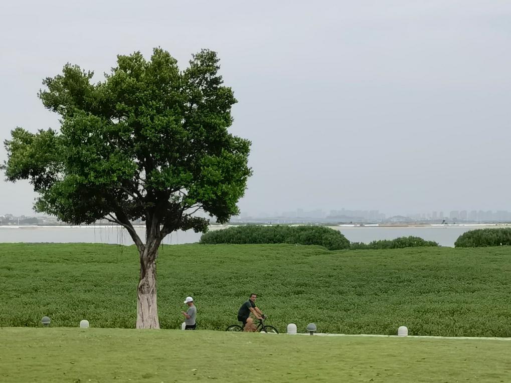 市民騎行經(jīng)過(guò)環(huán)東濱海旅游浪漫線紅樹(shù)林。新華社記者 秦宏 攝