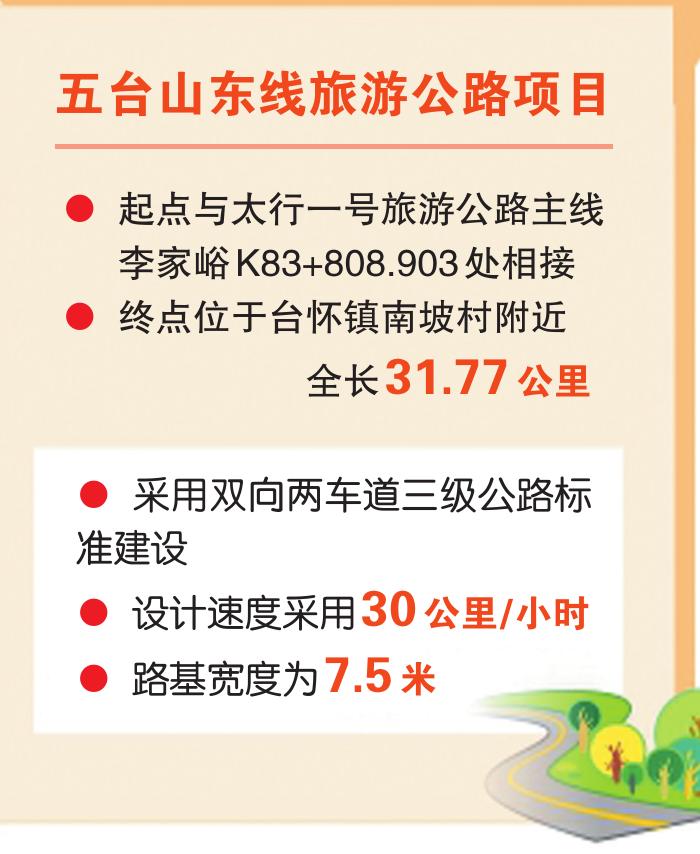 五臺山東線旅游公路起點與太行一號旅游公路主線李家峪K83+808.903處相接,終點位于臺懷鎮(zhèn)南坡村附近,全長31.77公里,采用雙向兩車道三級公路標準建設,設計速度采用30公里/小時,路基寬度為7.5米。項目實施圍繞“扶貧、旅游、生態(tài)、人文、研學”等核心宗旨,著力提升五臺山風景名勝區(qū)旅游公路的通行能力與服務水平,強化“交通+旅游”與“經濟增長”的導向作用。