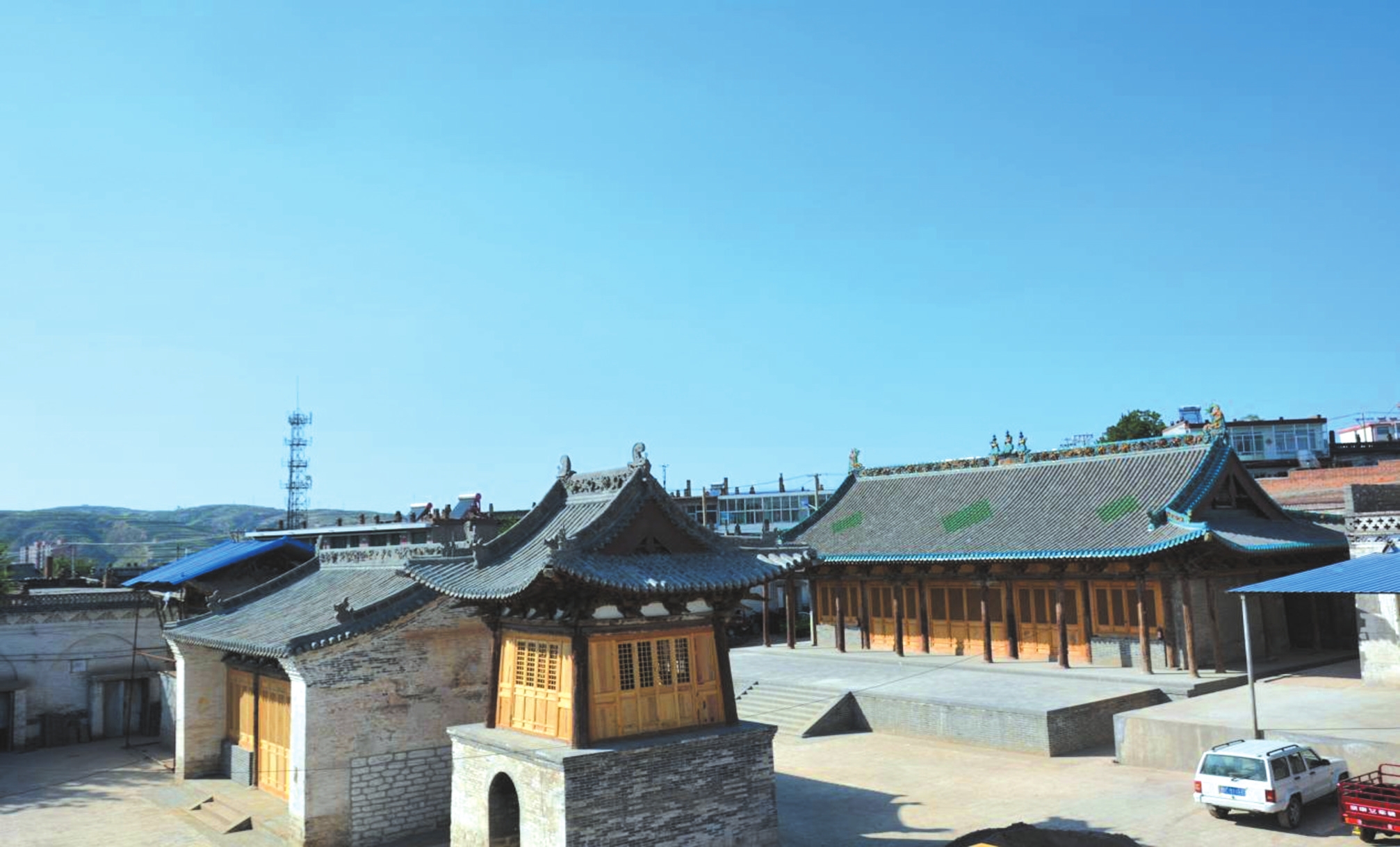 隆崗寺位于偏關(guān)縣新關(guān)鎮(zhèn)城內(nèi)隆崗街,又稱南寺廟。該廟坐北朝南,南北長(zhǎng)38米、東西寬26米,占地面積988平方米,建筑面積454平方米。寺廟始建于唐代,明清時(shí)曾重修,中軸線現(xiàn)存天王殿、正殿,兩側(cè)為鐘樓、鼓樓。正殿建于高1.2米的石砌臺(tái)基上,面寬五間,進(jìn)深六椽,四周圍廊,單檐歇山頂,綠琉璃瓦剪邊,七檁前后廊式構(gòu)架,斗拱三踩單昂,平身科每間一攢,門(mén)窗已被后人改動(dòng)。