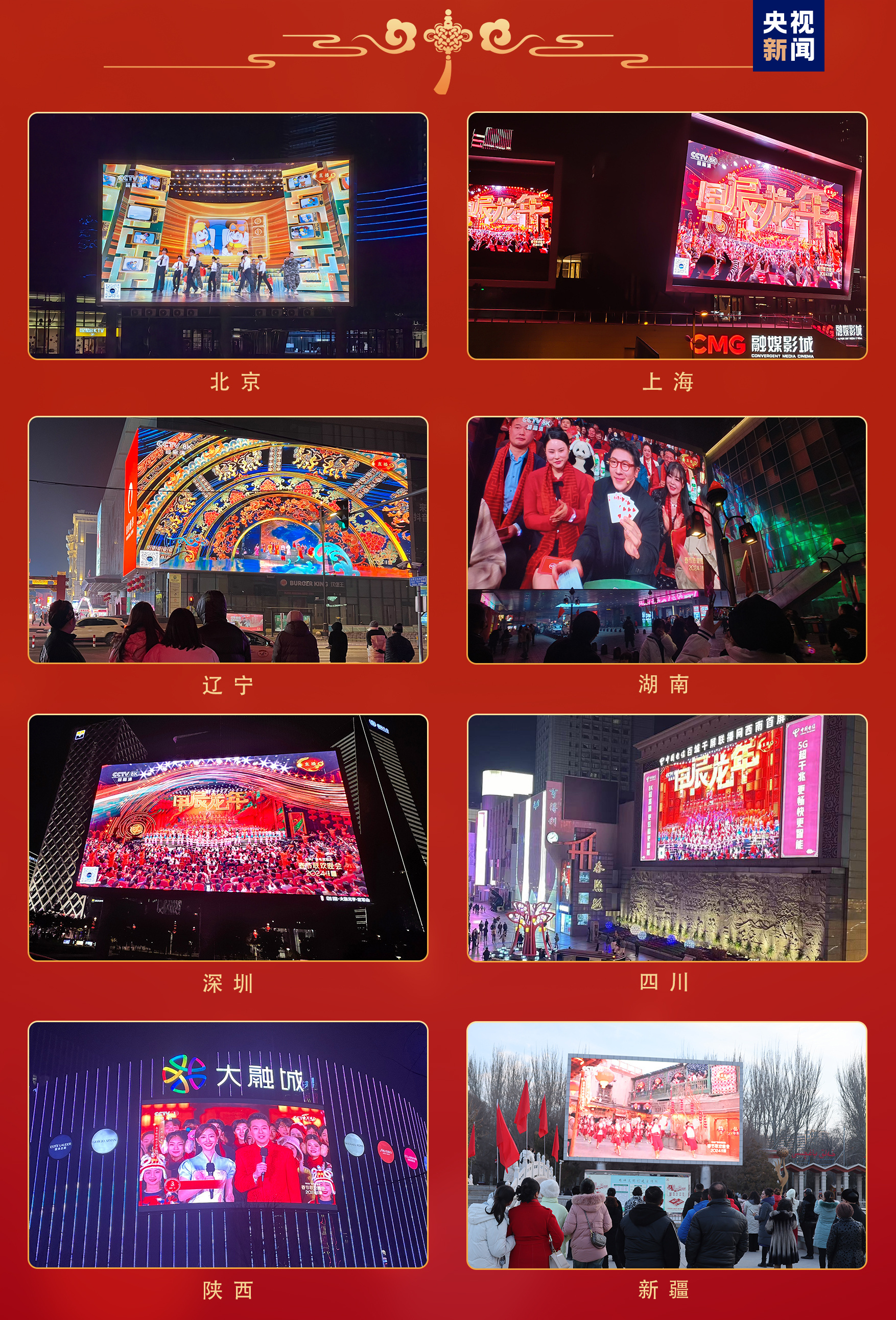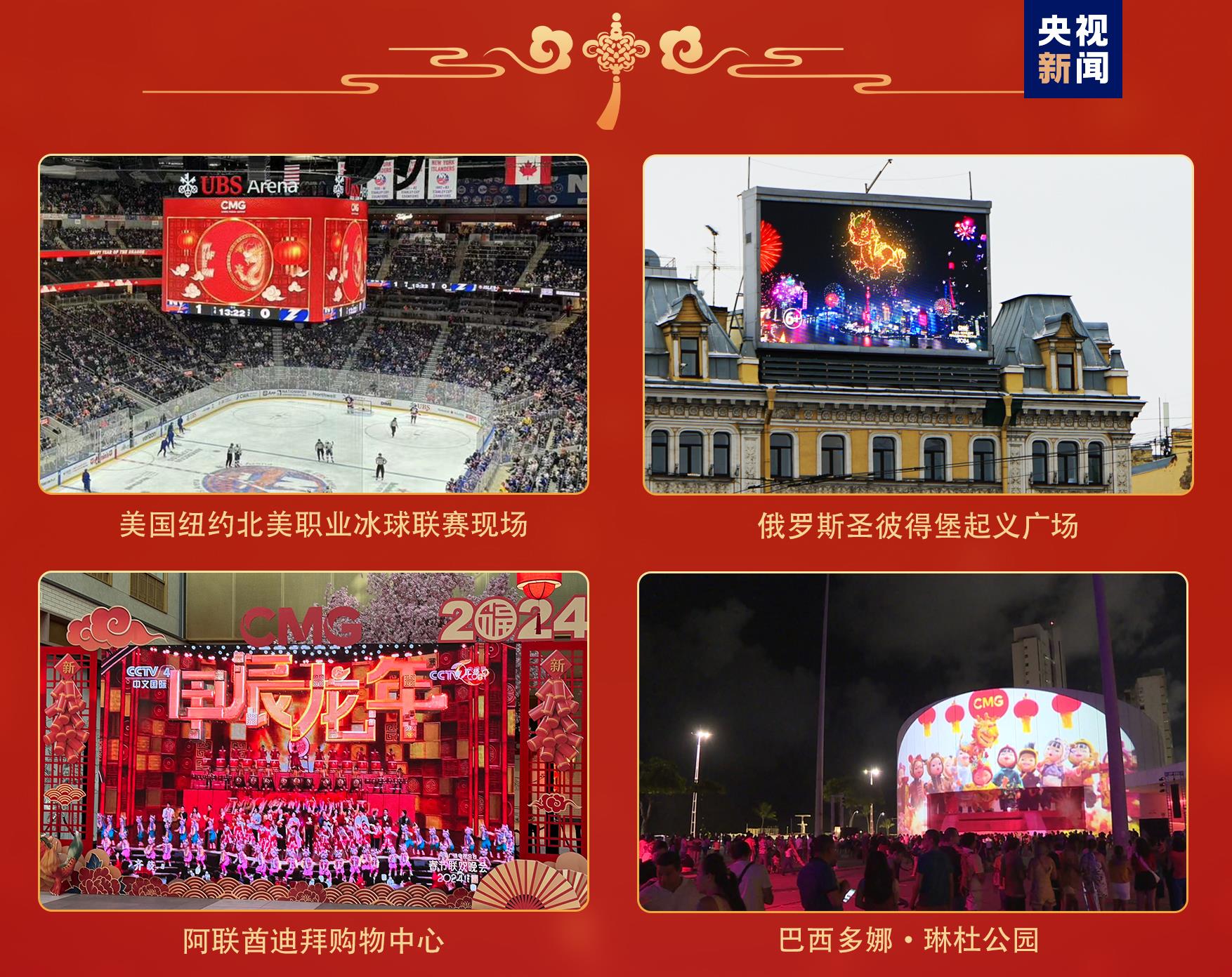 全球看春晚。作為聯合國大會將農歷新年列為聯合國假日后的首個新年,總臺主辦的“春晚序曲 全球看春晚”活動在美國、肯尼亞、瑞士等多國舉辦近40場;各大洲49個國家、90座城市的3000余塊公共大屏直播和宣介總臺春晚;世界最高建筑迪拜哈利法塔、非洲第一高樓埃及新行政首都中央商務區(qū)標志塔、瑞典斯德哥爾摩市中心國王花園廣場、巴西多娜·琳杜公園等多個全球地標性建筑上演春晚燈光秀……靈動吉祥的“龍辰辰”將中國新年的美好祝愿傳遍全球。